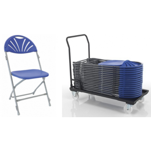 - Comes with an accompanying 40 Fan Back Folding Chair trolley