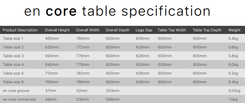 EN Core Tables are intelligently designed to save space, and are available with a number of extra features.